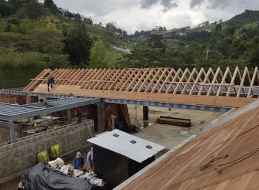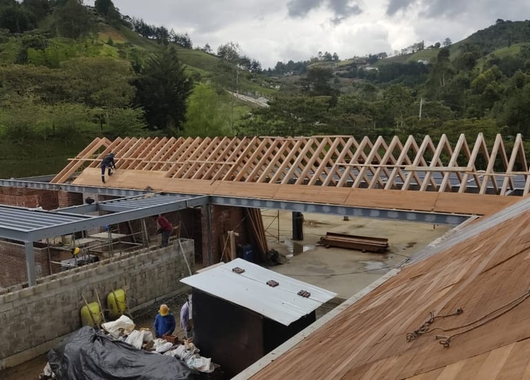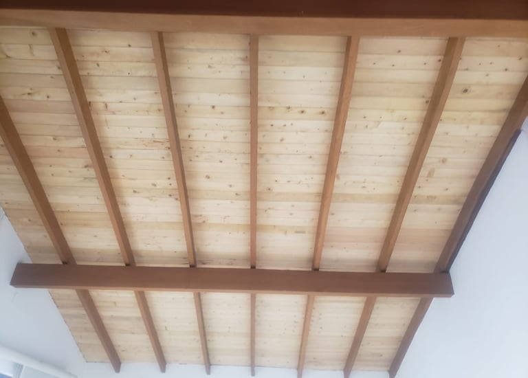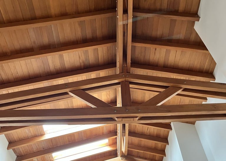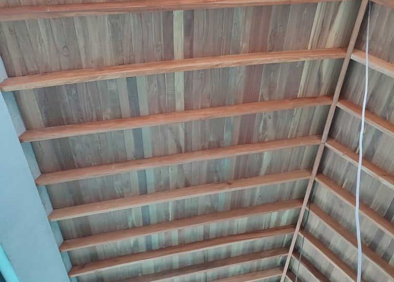 Techo hecho en tablilla de Pino y Abarco