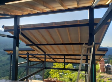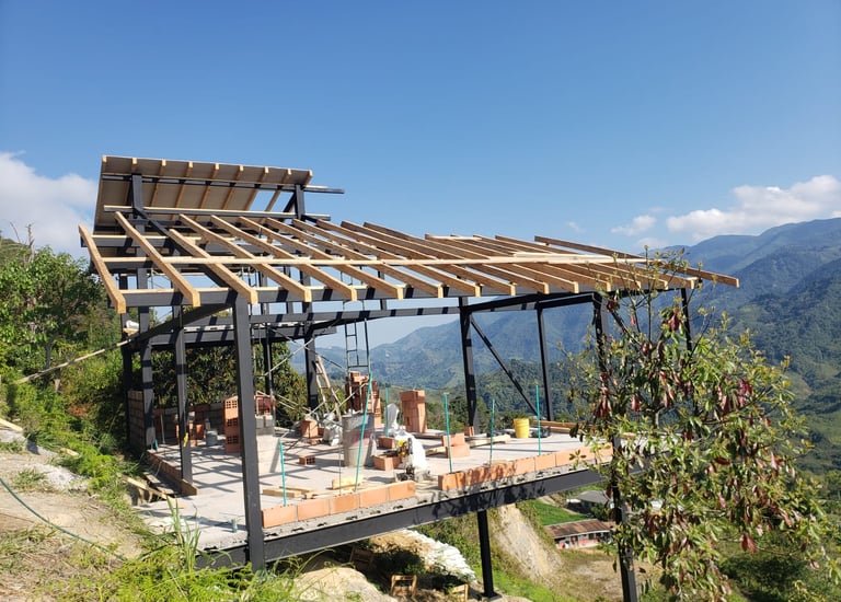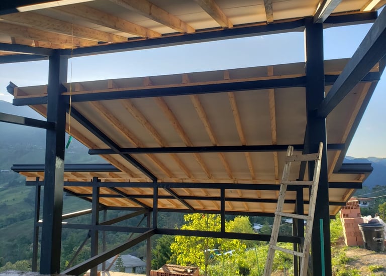 Estructura metalica con alfardas de pino